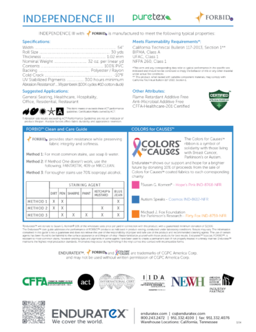 - Abrasion Resistance*: Wyzenbeek (100K cycles #10 cotton duck)
