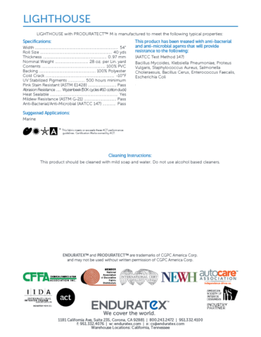 - Abrasion Resistance*: Wyzenbeek (50K cycles #10 cotton duck)